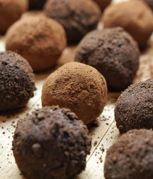 Use a tablespoon to scoop out truffles. Quickly form balls with your hands and roll in the remaining cocoa powder. Roll again in other ingredients if you want (coconut, chopped nuts, cacao nibs, etc.) Refrigerate.